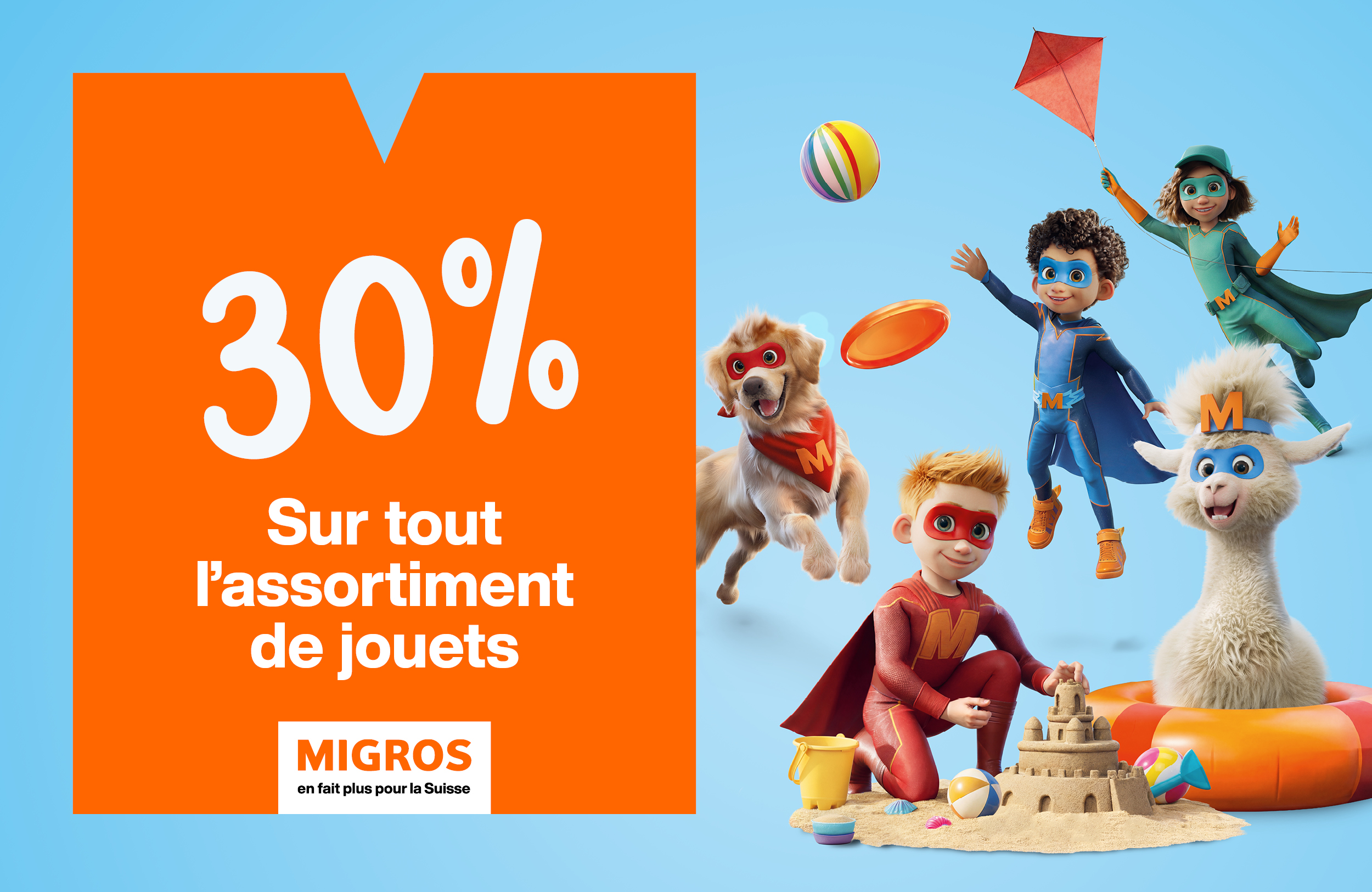 migros Jouer en plein air du jeudi 26 mars au dimanche 29 mars 30% sur tout l’assortiment de jouets Voir conditions en magasin promotions en cours Migros Restaurant – Offre Carat – Lapin de Pâques 5àsec – parure de lit 5àsec – 20% sur le nettoyage de 2 tapis Migros Jouer en plein air
